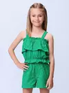 Conheça o Conjunto Verde de Laise com Babados Momi, a escolha perfeita para as pequenas que desejam brilhar em qualquer ocasião! Este conjunto é delicado e cheio de estilo, ideal para um visual romântico e sofisticado.